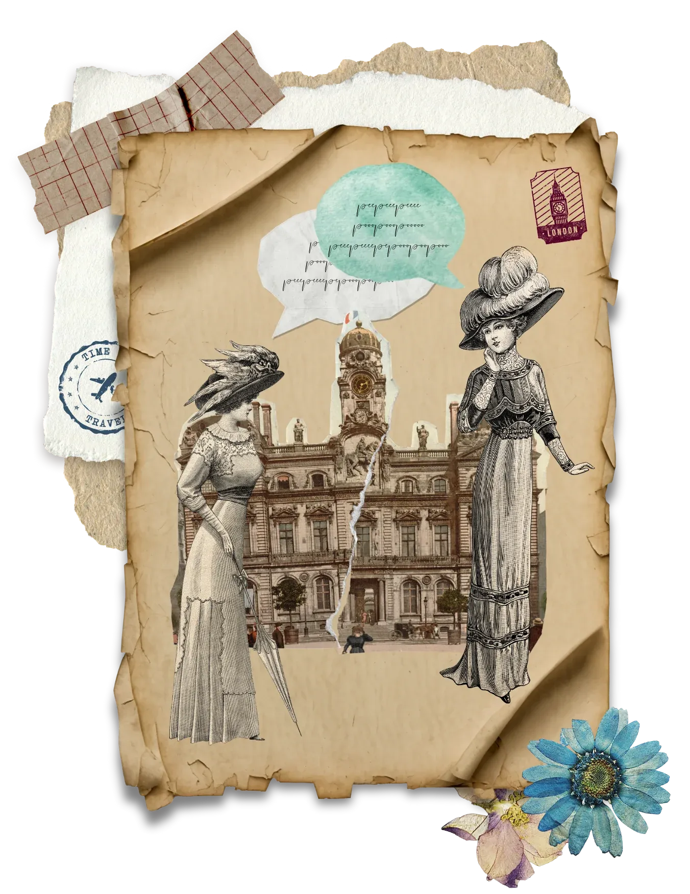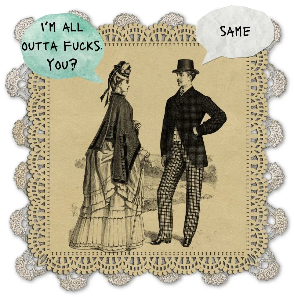 And I had so much fun that right after, I went into joyful overdrive and made this scrapbook entry for you, with two Victorian ladies singing peepeepee poopoopoo.